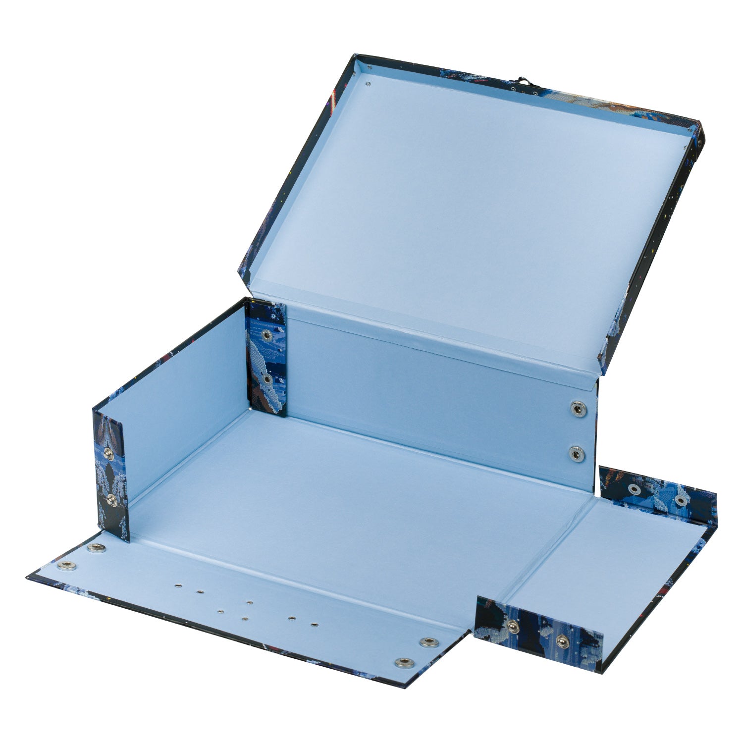 The Pixel Space school case brings new possibilities for storing school supplies. Thanks to its ingenious snap system and reinforced corners, it can be easily disassembled and folded in seconds.