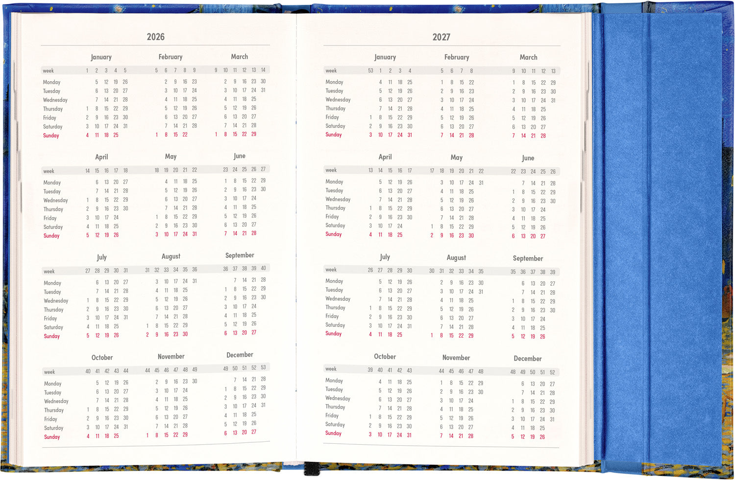 Luxurious weekly diary with magnetic closure and a design of a painting by the popular Dutch painter Vincent van Gogh.