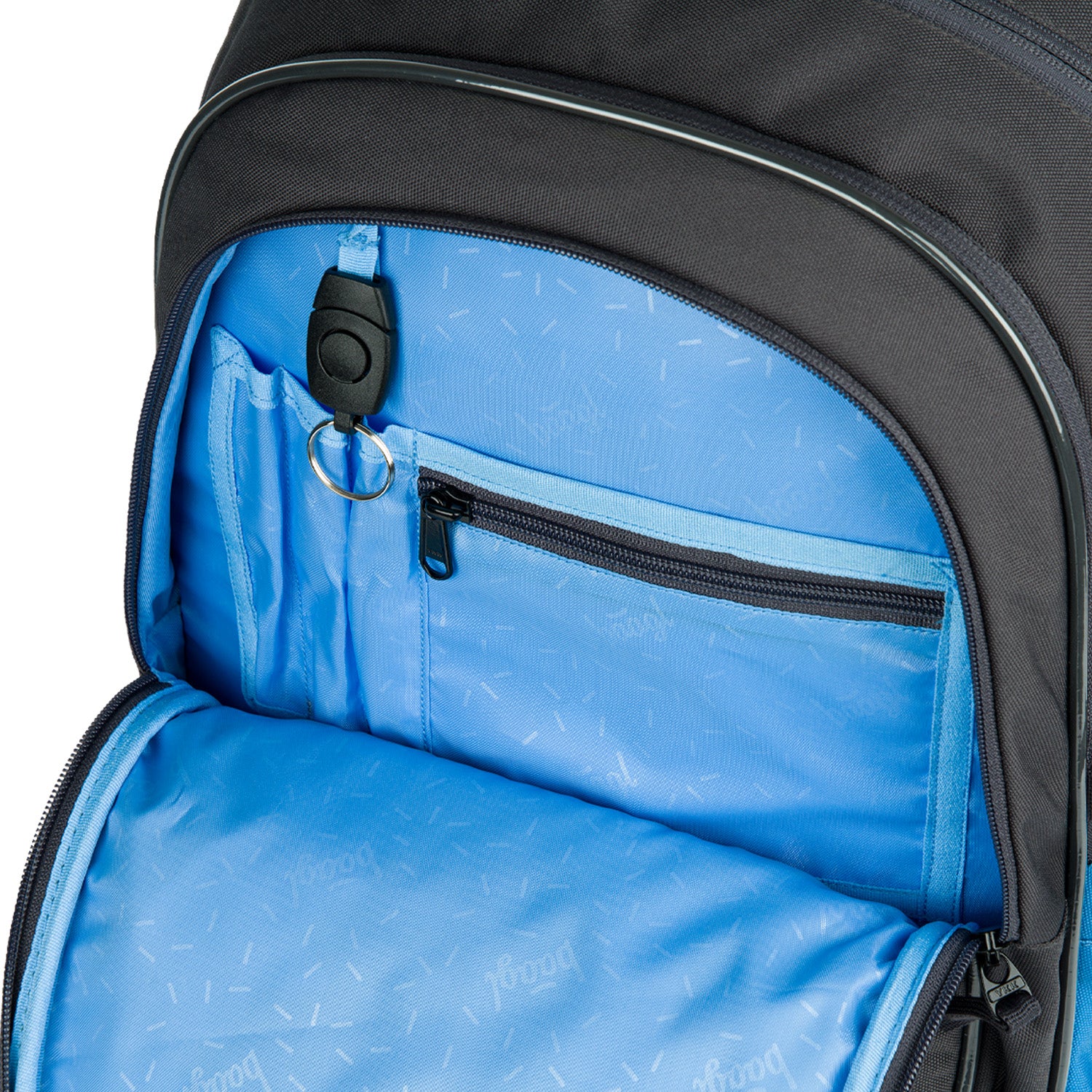 • Ergonomic school backpack with three individually closable compartments, internal organiser and a pocket for a 15" laptop or tablet.
