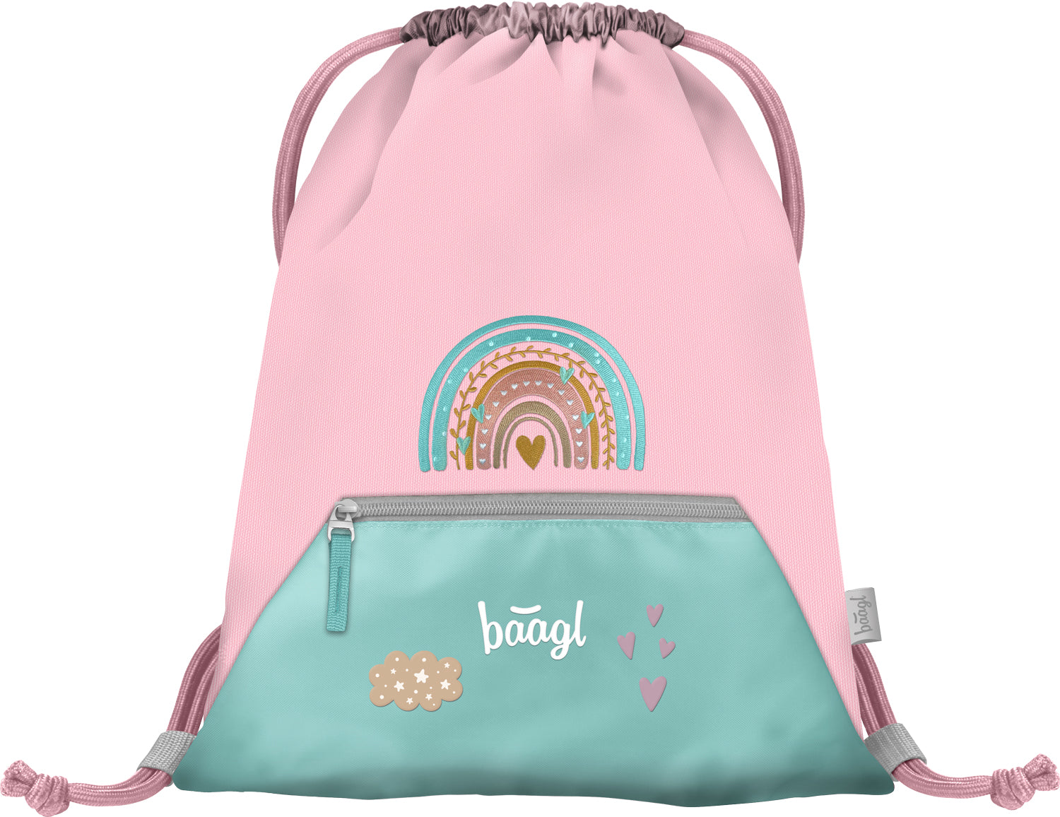 GYM SACK WITH ZIP POCKET PINK RAINBOW