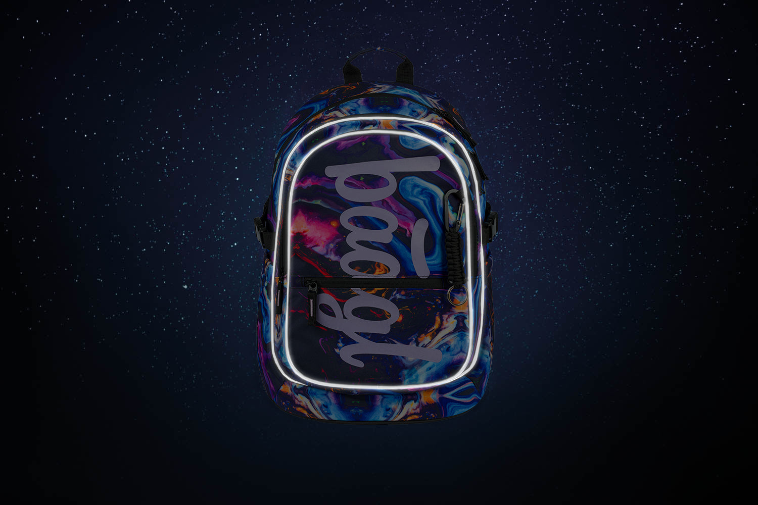 • The backpack is equipped with a trendy pendant.