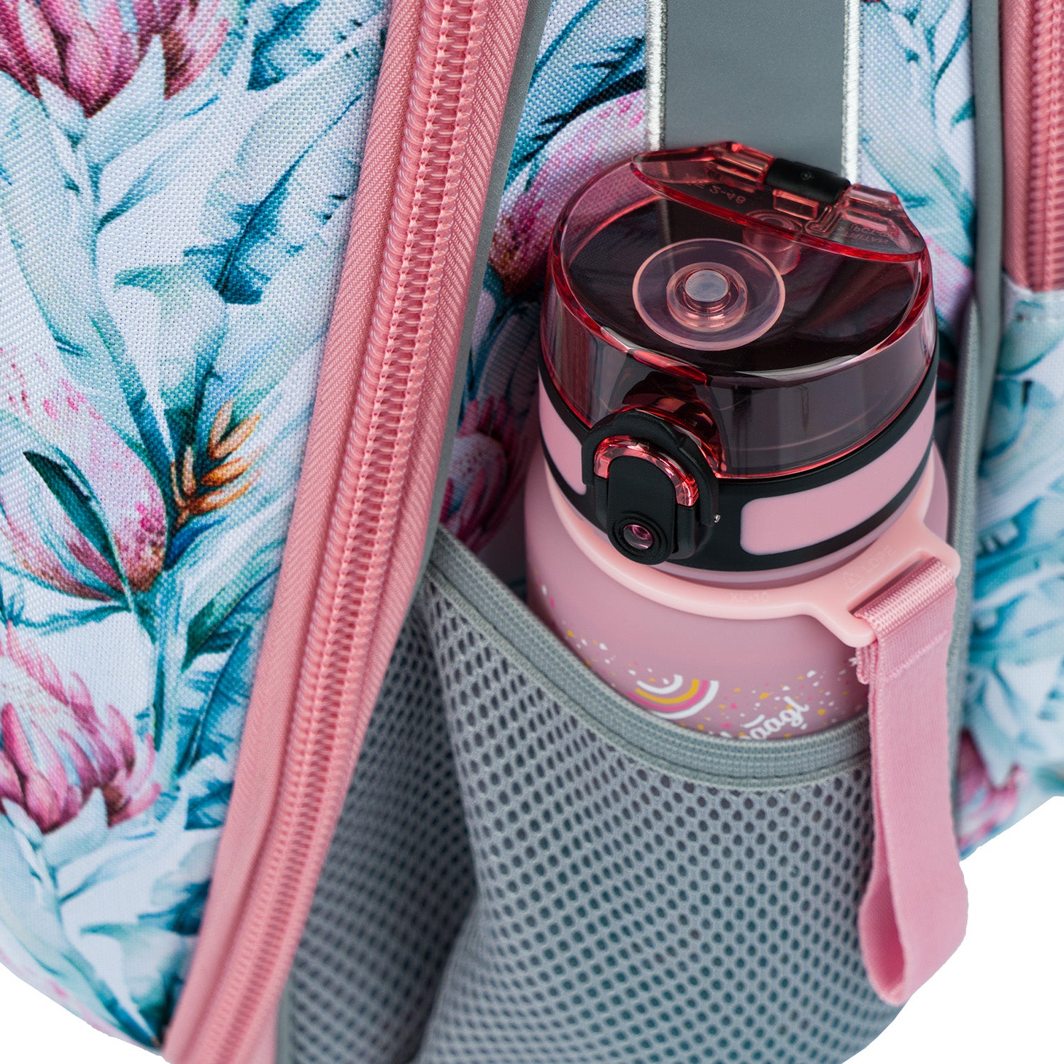 • Solid mesh side pockets that are suitable for one of our drinking bottles. • The solid bottom holds a stable shape and therefore the bag is free-standing.