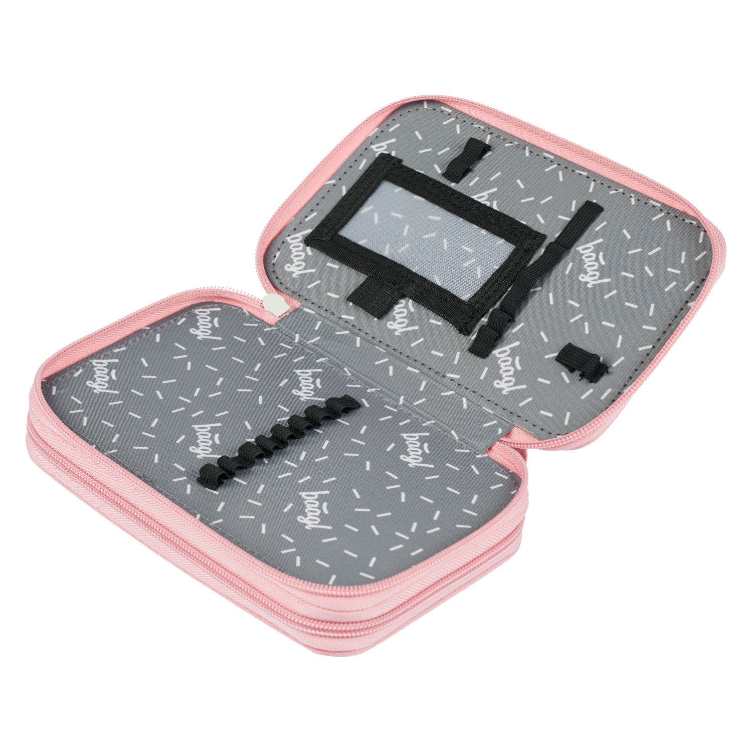 • Double-compartment pencil case with reinforced back for easier handling.