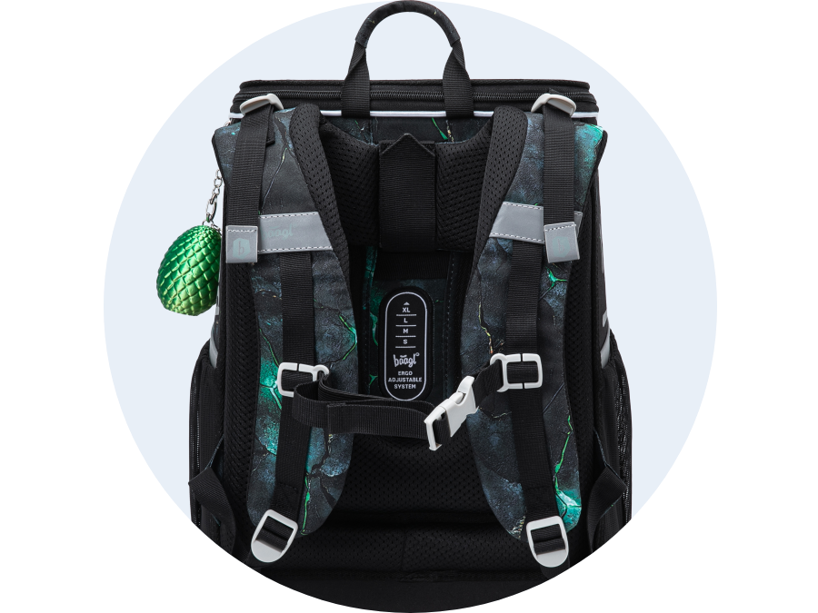 • The ERGO ADJUSTABLE sliding back system allows the bag to be adjusted to three different sizes, so it can literally grow with your child.