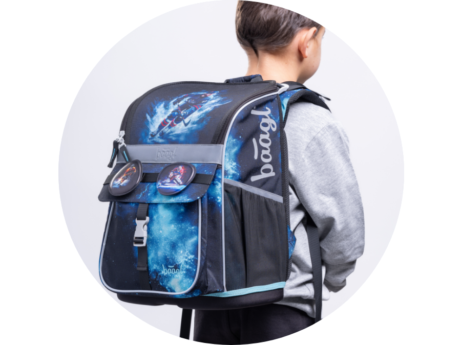 • Lightweight ergonomic school bag with a reinforced body, suitable for children from the 1st grade of elementary school.