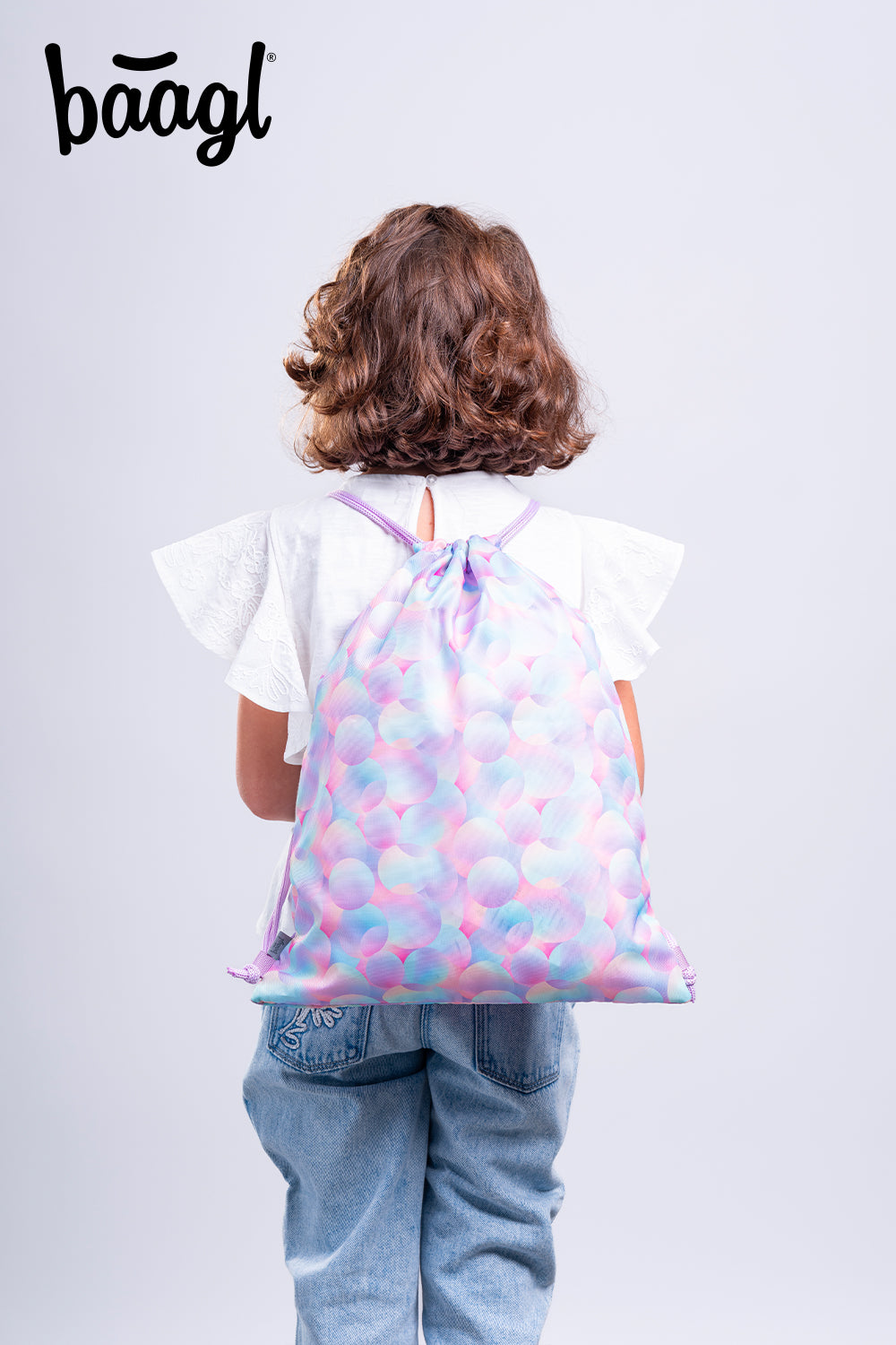 A practical gym bag in marshmallow shades. With strong drawstrings, washable material, and easy attachment to a backpack or school bag, it is an ideal accessory.