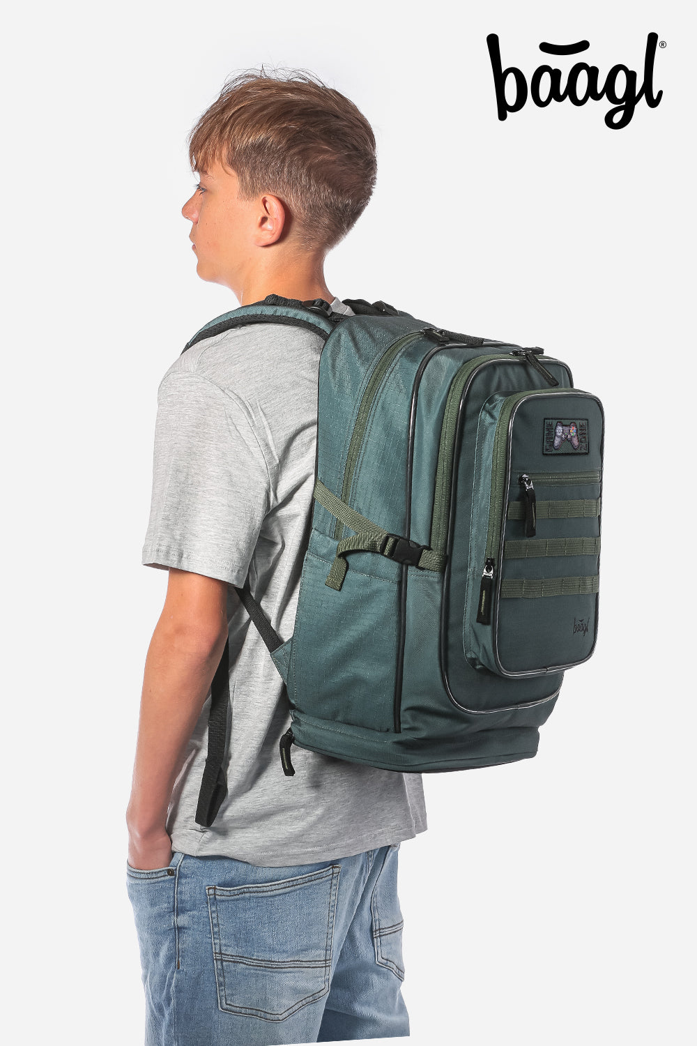 The ergonomic Cubic Grove school backpack with minimalist appliqué, which will delight all PC game lovers, is made of recycled material and is also extremely practical thanks to its spacious laptop pocket.