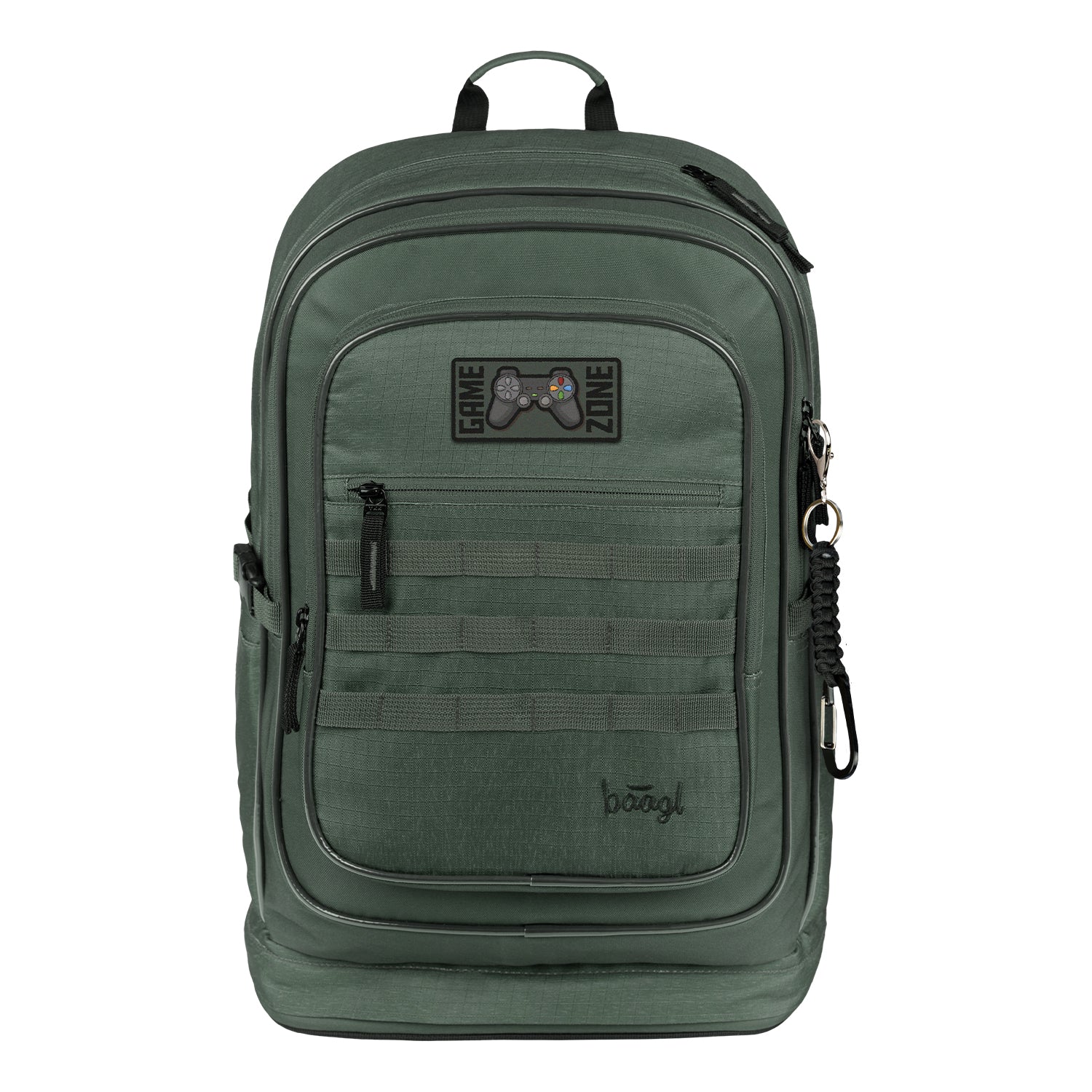 • The front compartment of the backpack includes a handy organiser as well as a carabiner strap for hanging keys. This carabiner can be detached and used separately.