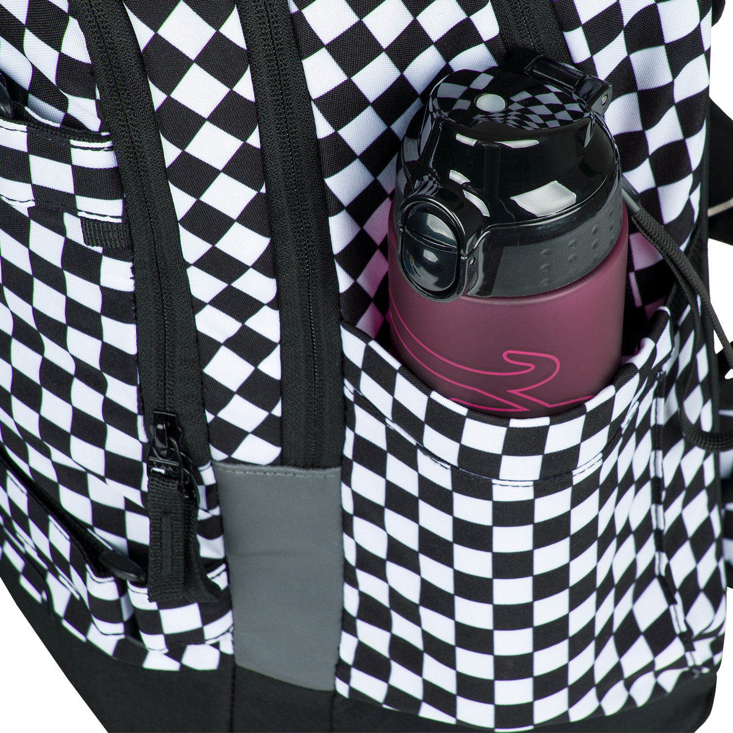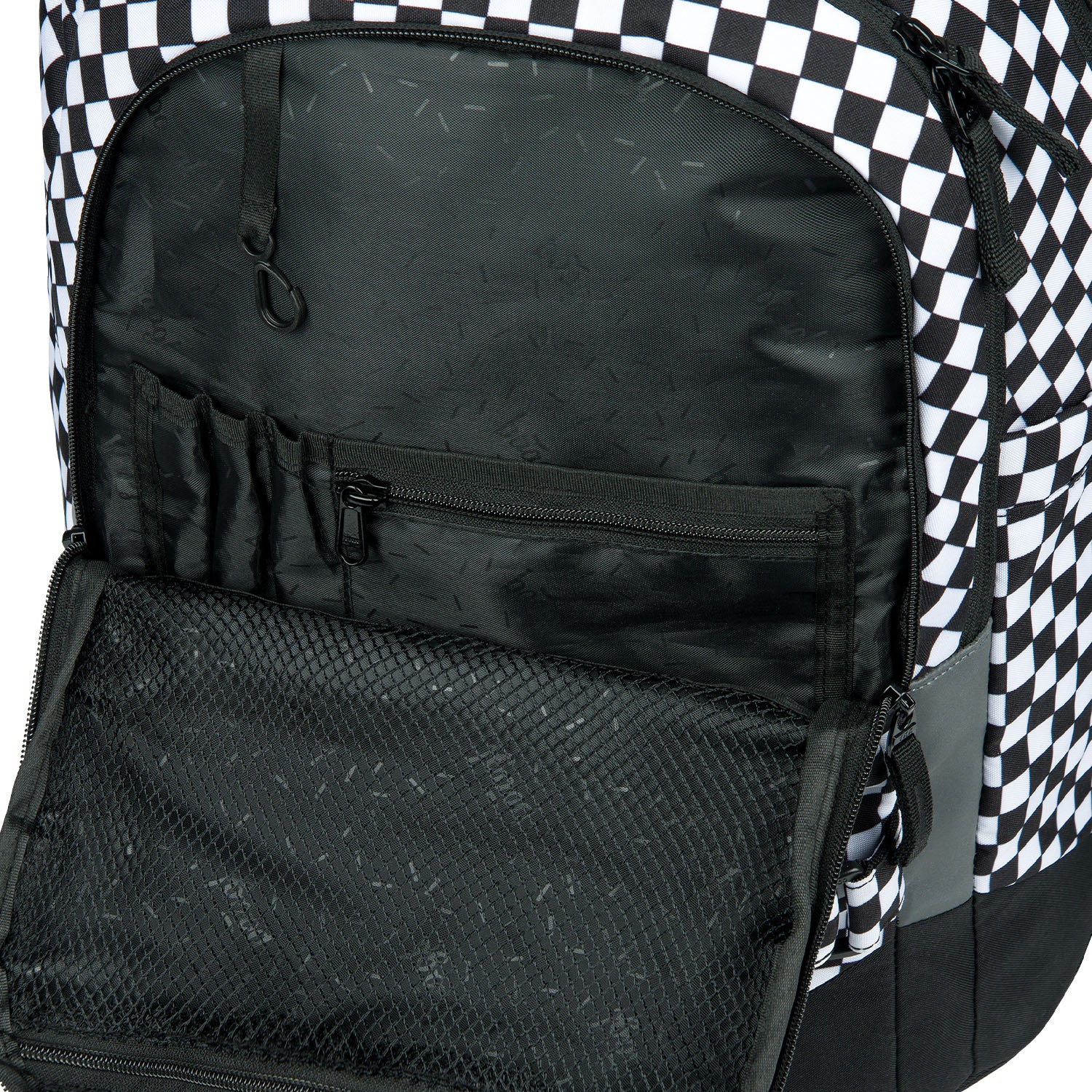 The spacious Skate Max backpack with ska motif and skateboard straps can be adjusted to four different sizes thanks to the adjustable back system.