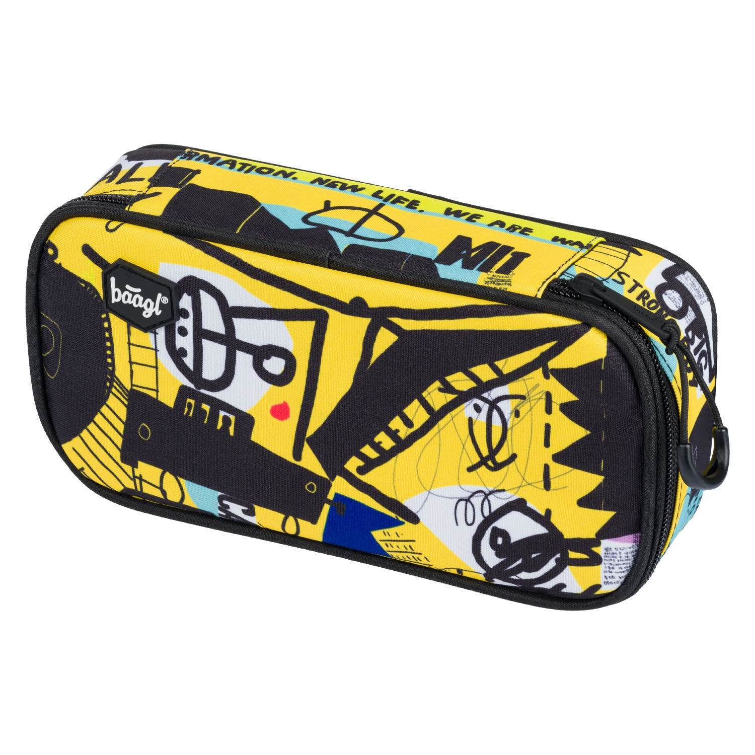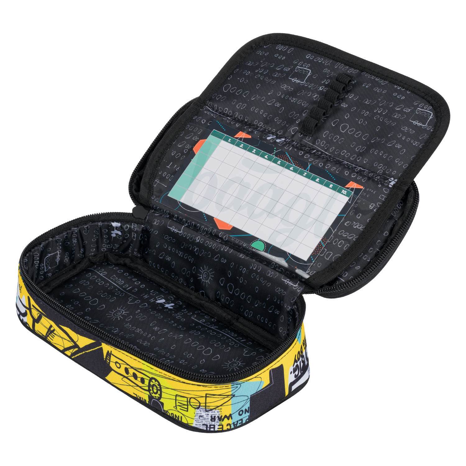 Yellow-black school etui with abstract print. The pencil case is suitable from primary school upwards.