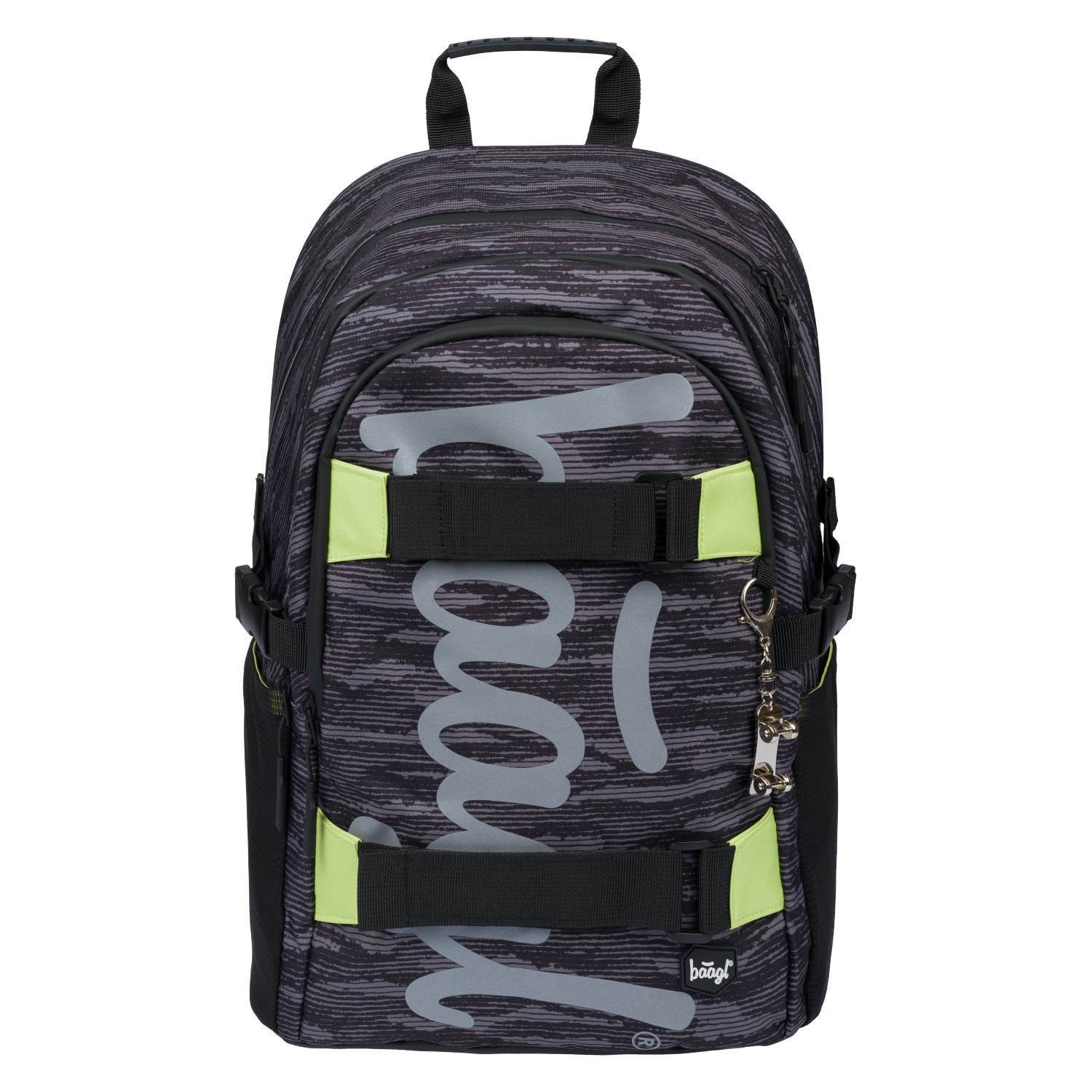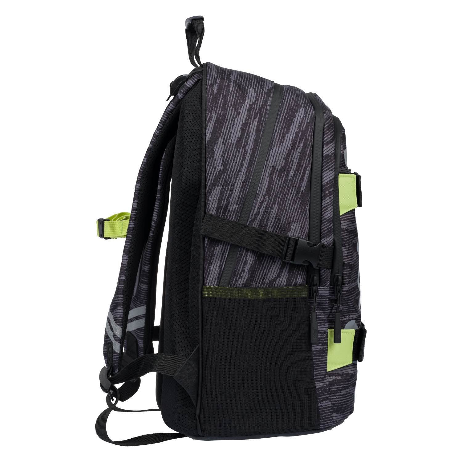 School backpack Skate Gray in gray colour with light green details. The backpack is suitable from primary school upwards.