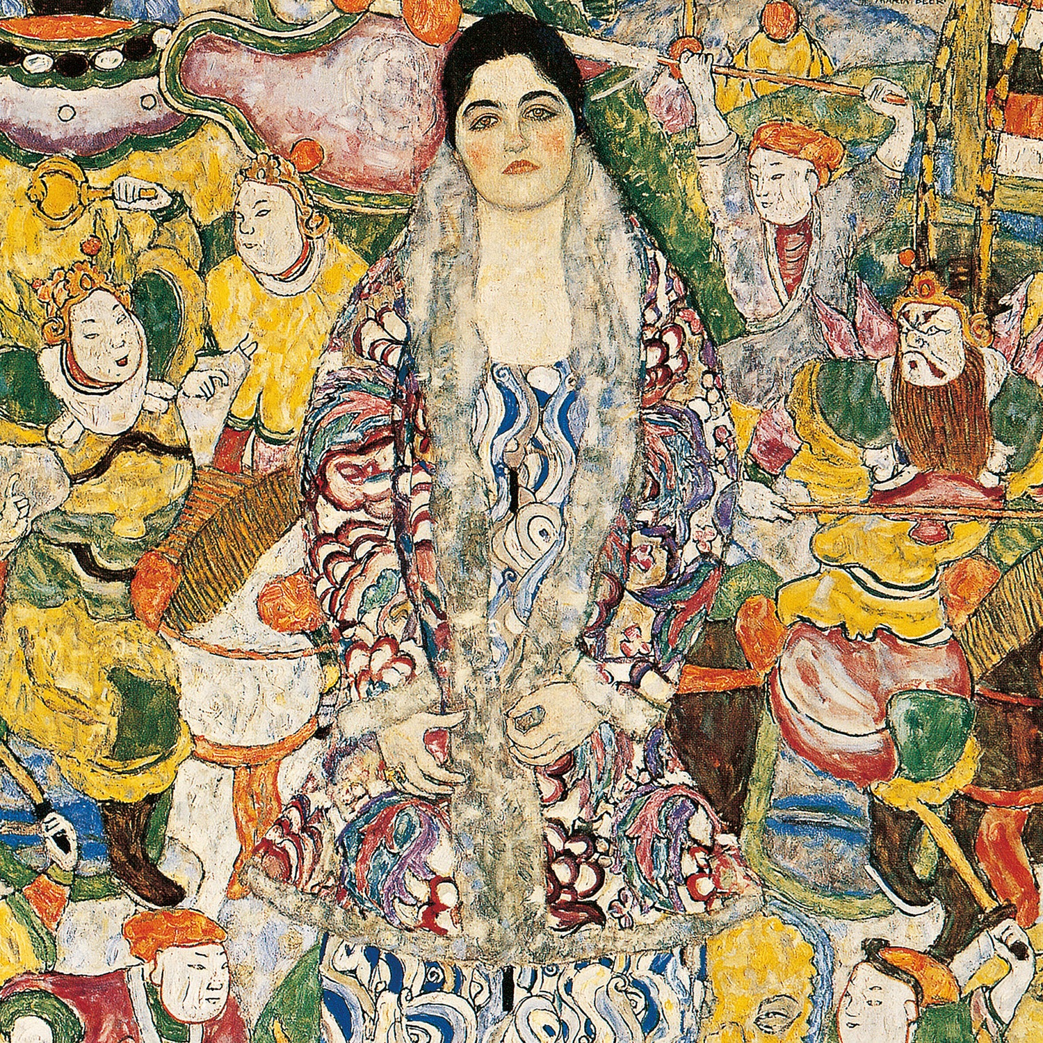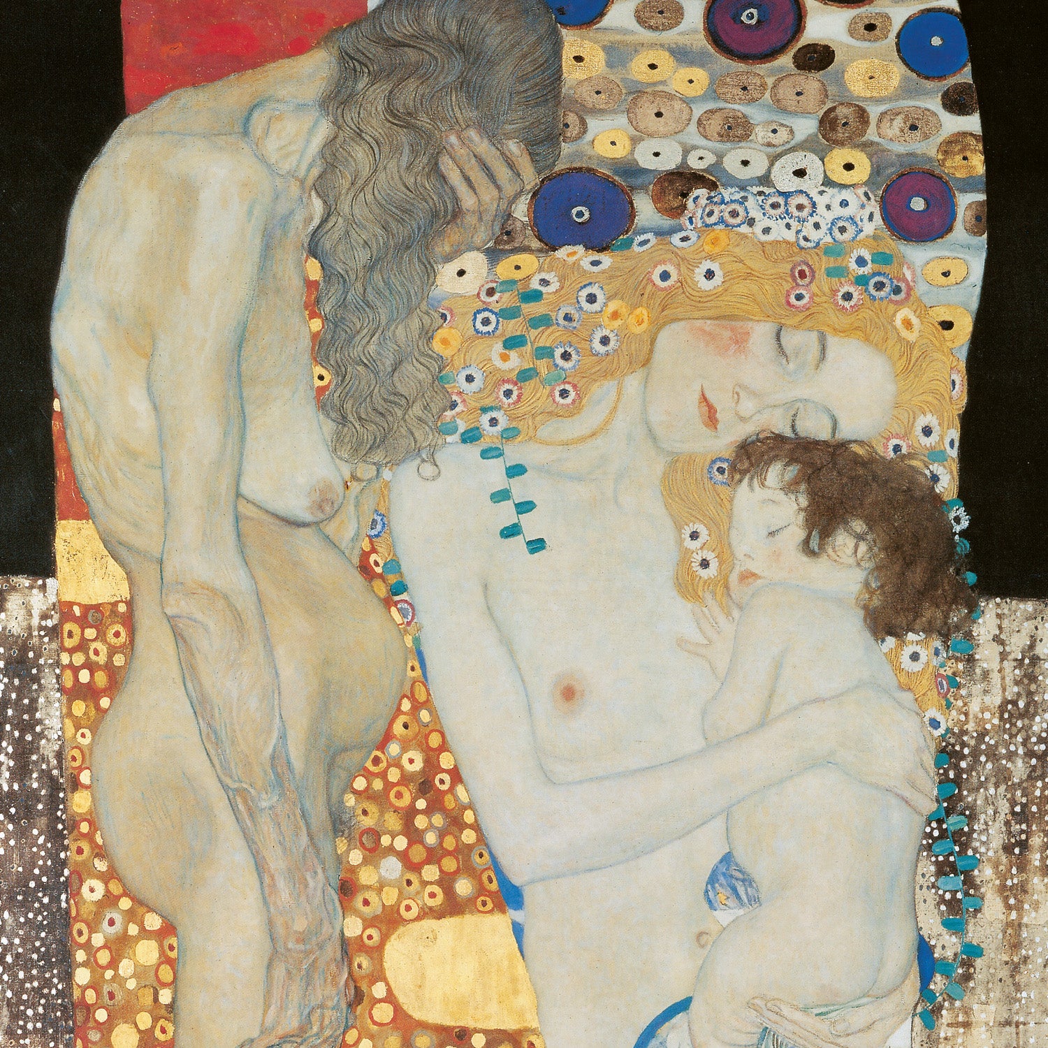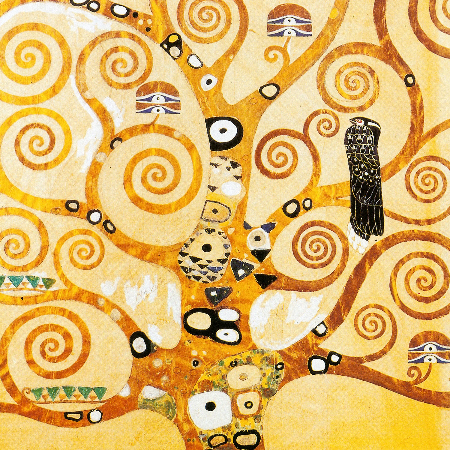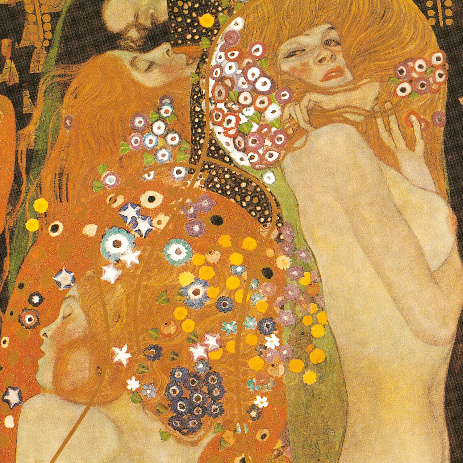 Reproduction of colourful paintings by the famous Austrian painter Gustav Klimt on the pages of a grid calendar.