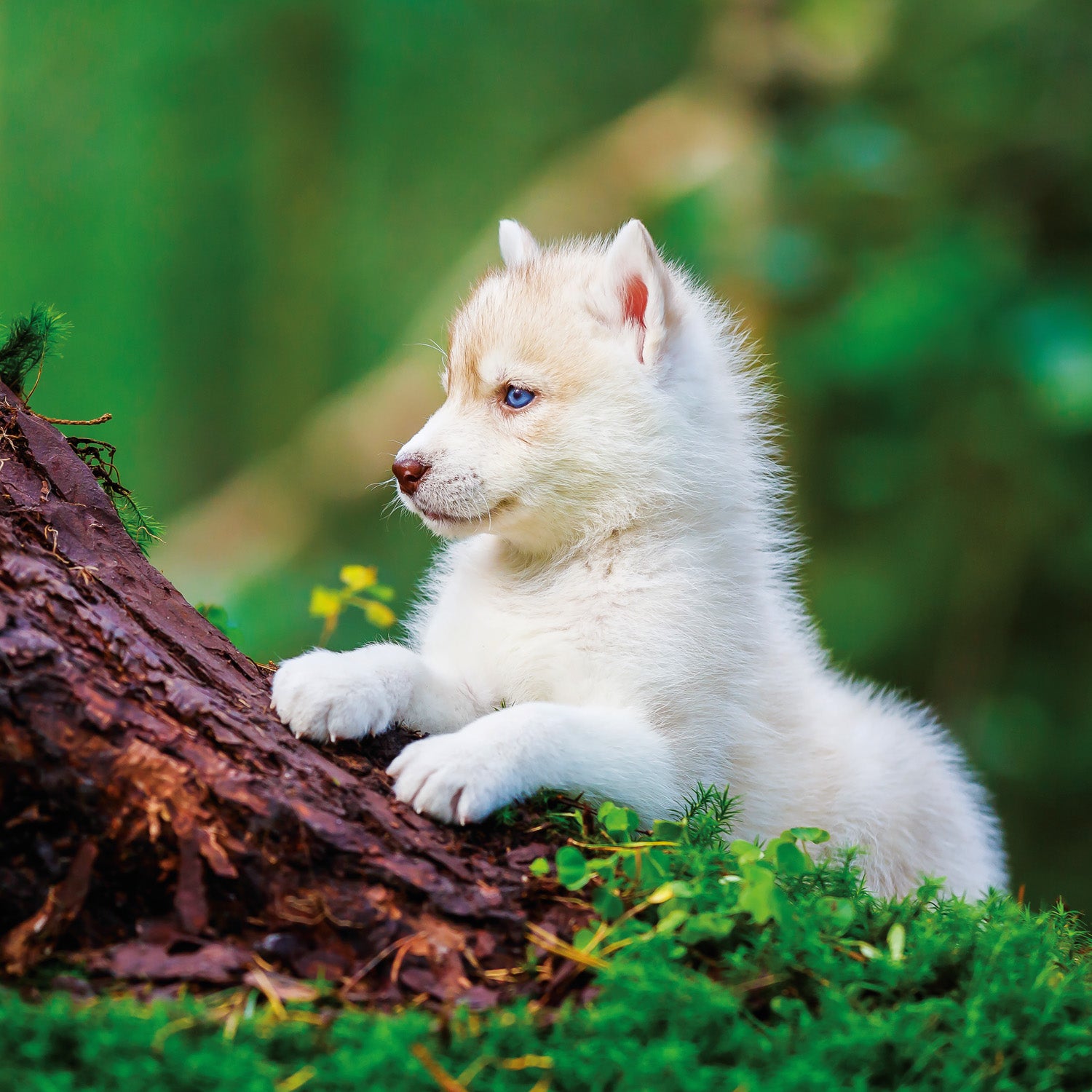 Cute puppies in photos in a grid calendar.