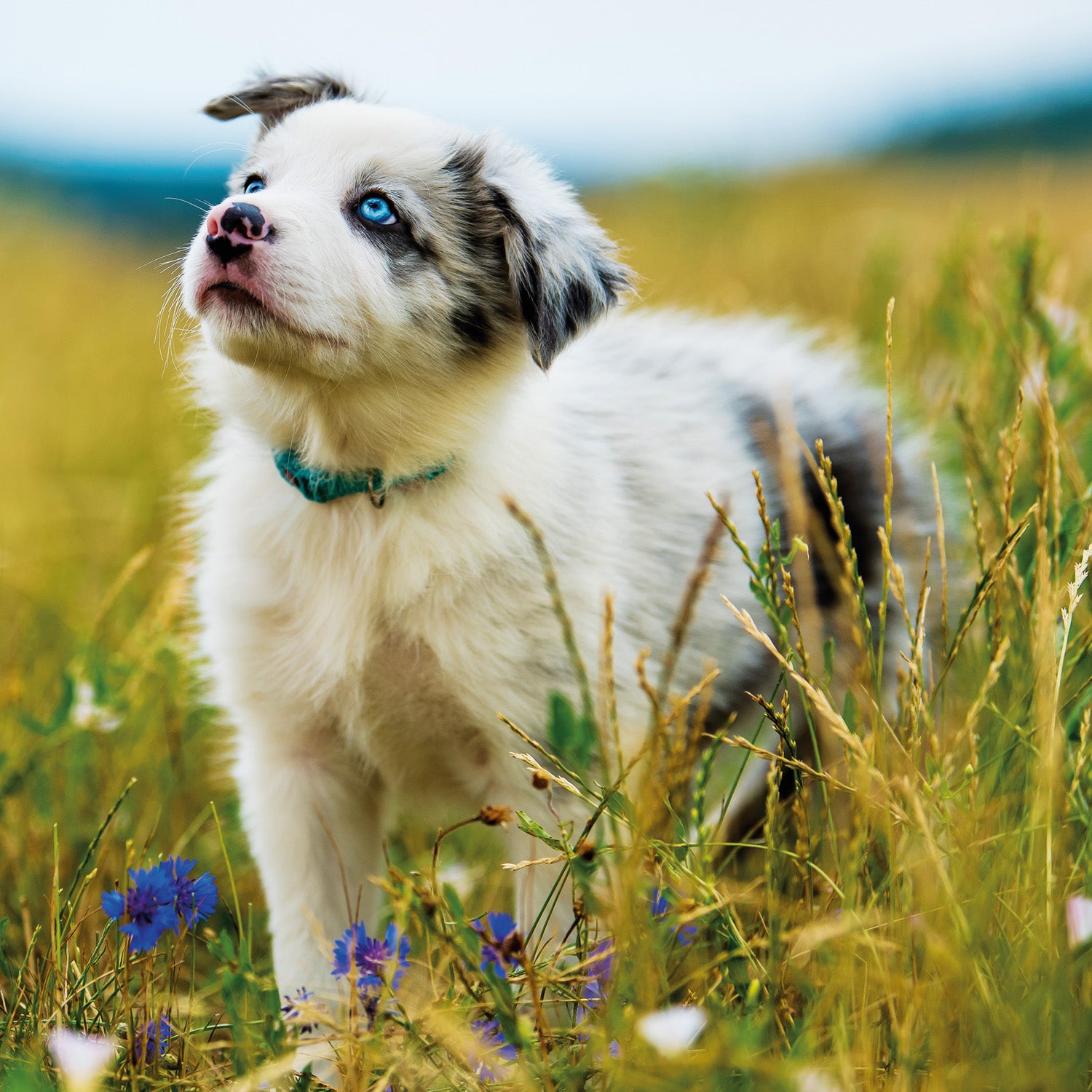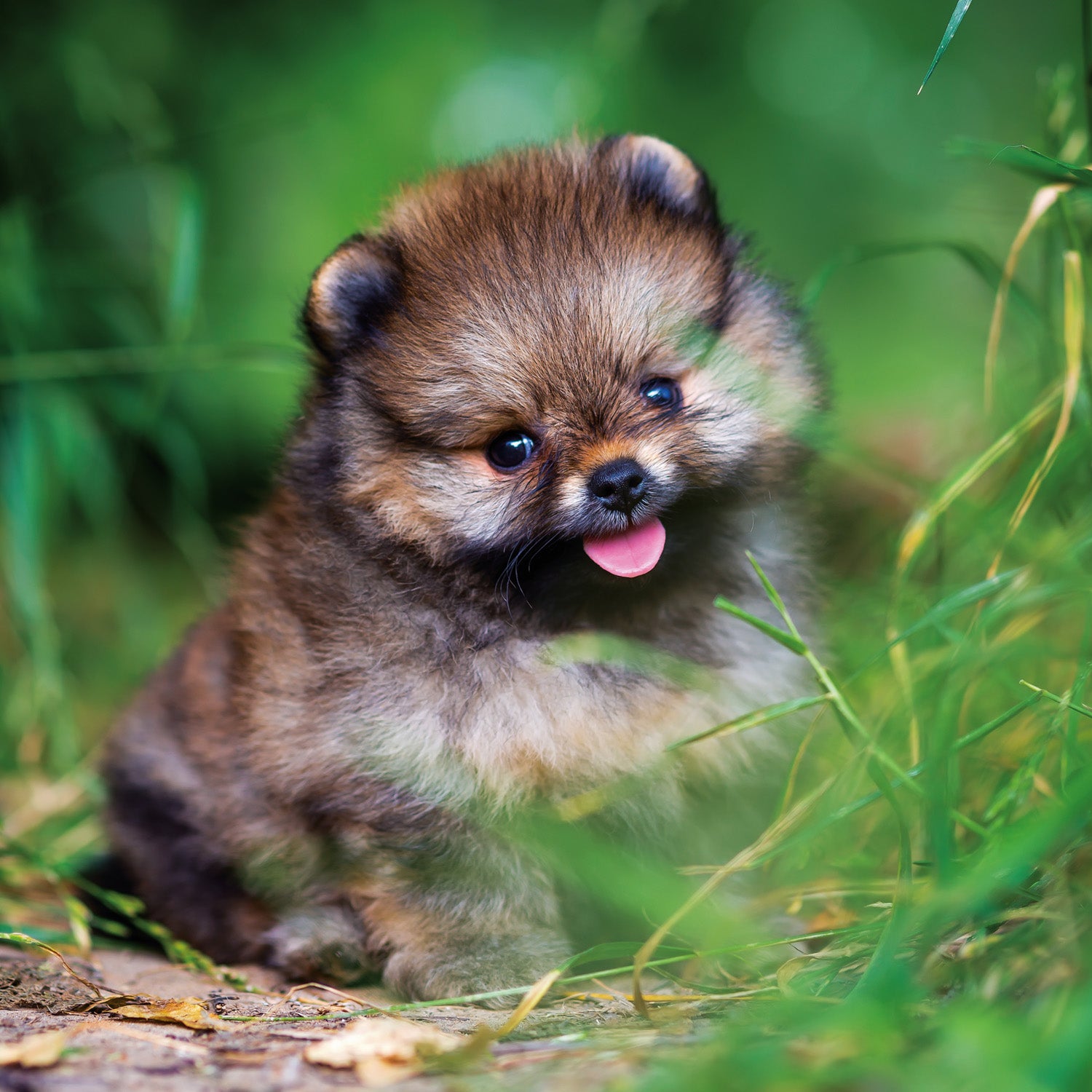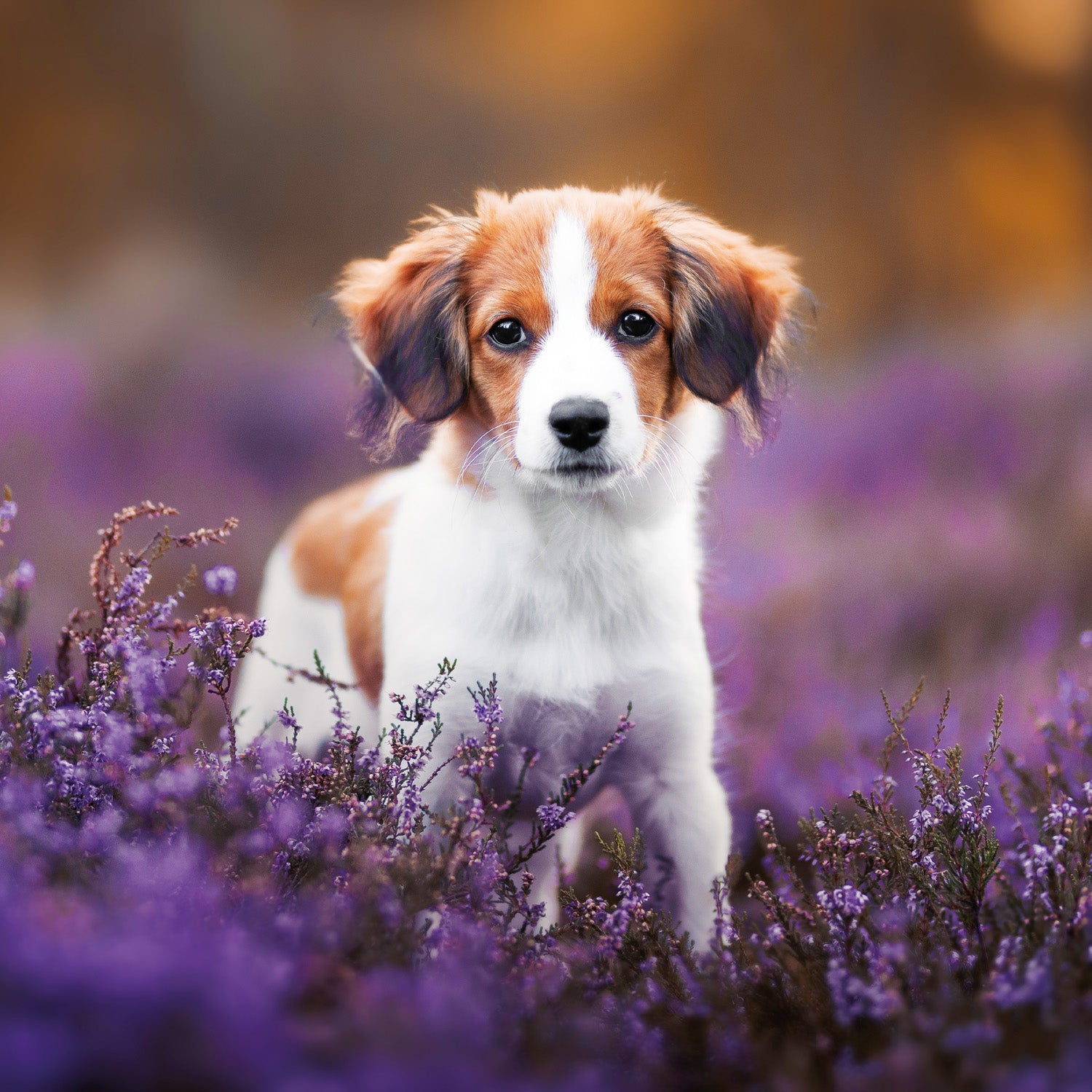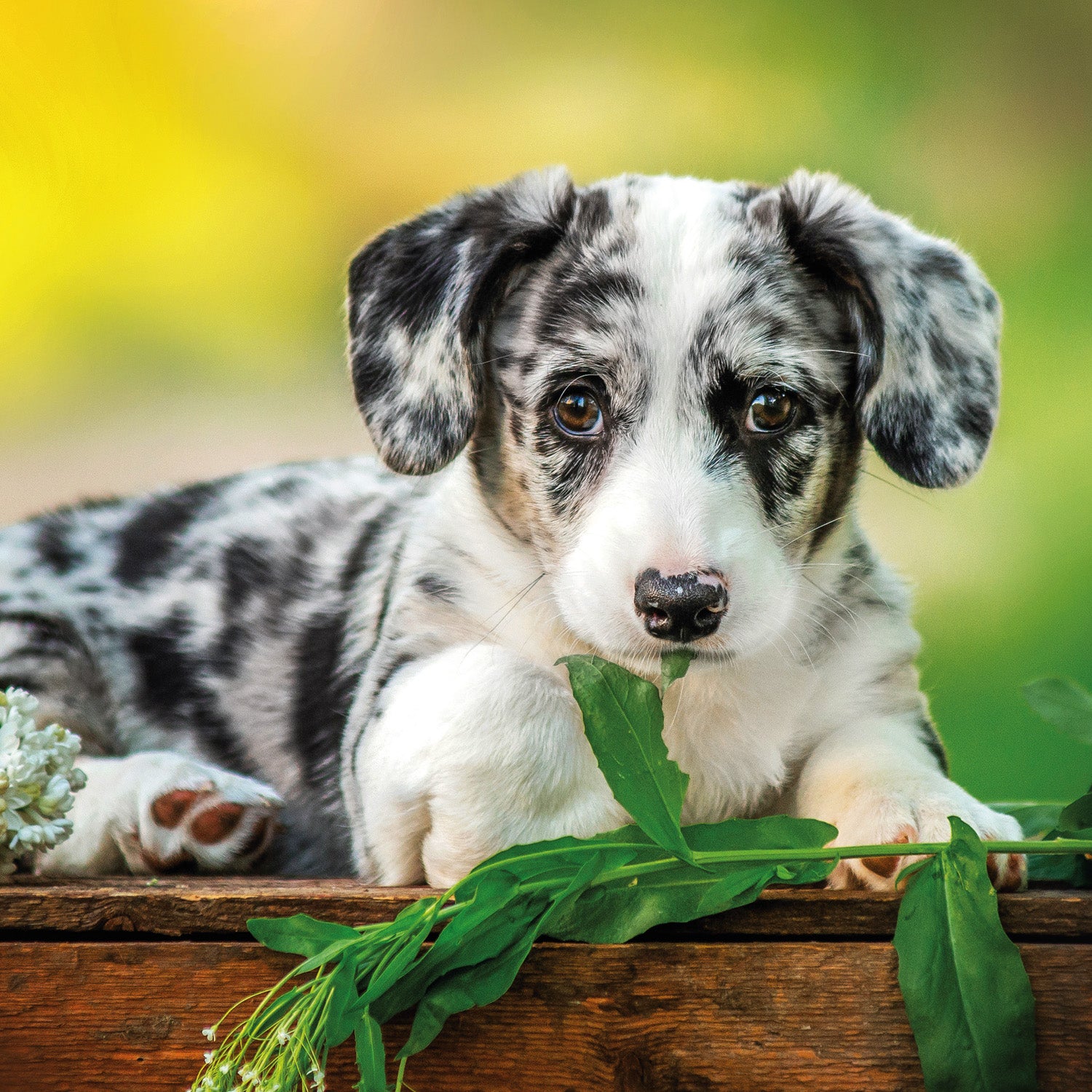 Cute puppies in photos in a grid calendar. Inside you will find a clear calendar from September 2025 to December 2026 in six languages, with moon phases, important holidays and space for notes for each day.