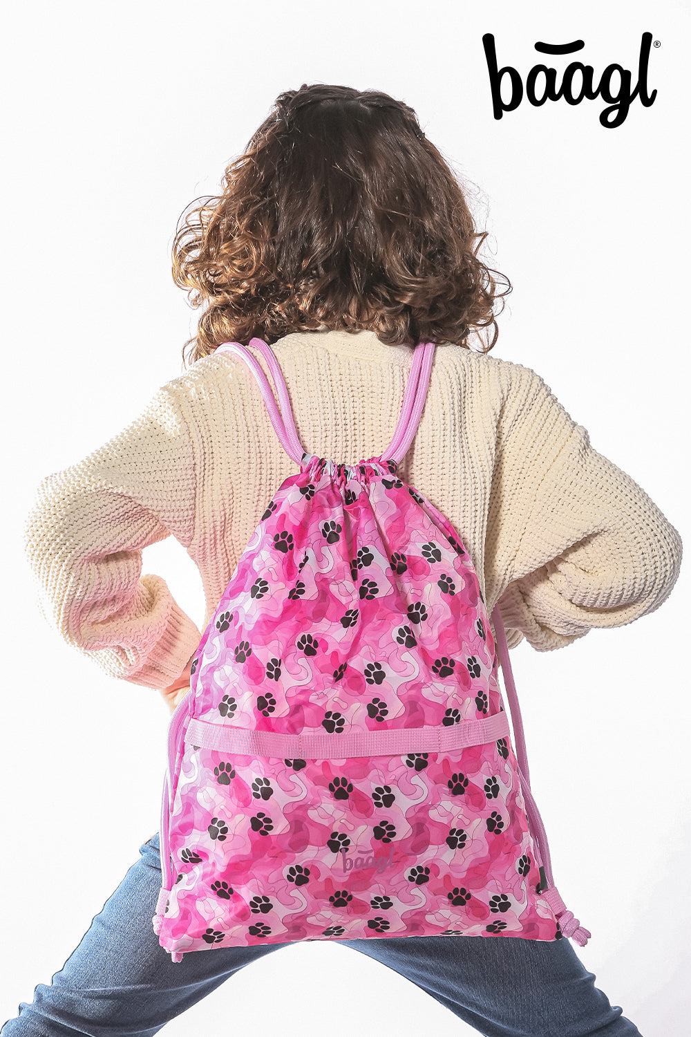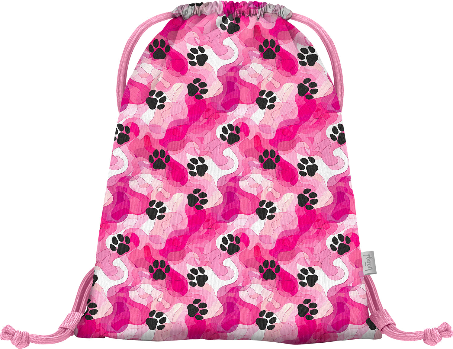 The pink bag with paw motif and strong laces for comfortable carrying is suitable not only for slippers and the gym, but also for walks with the dog.