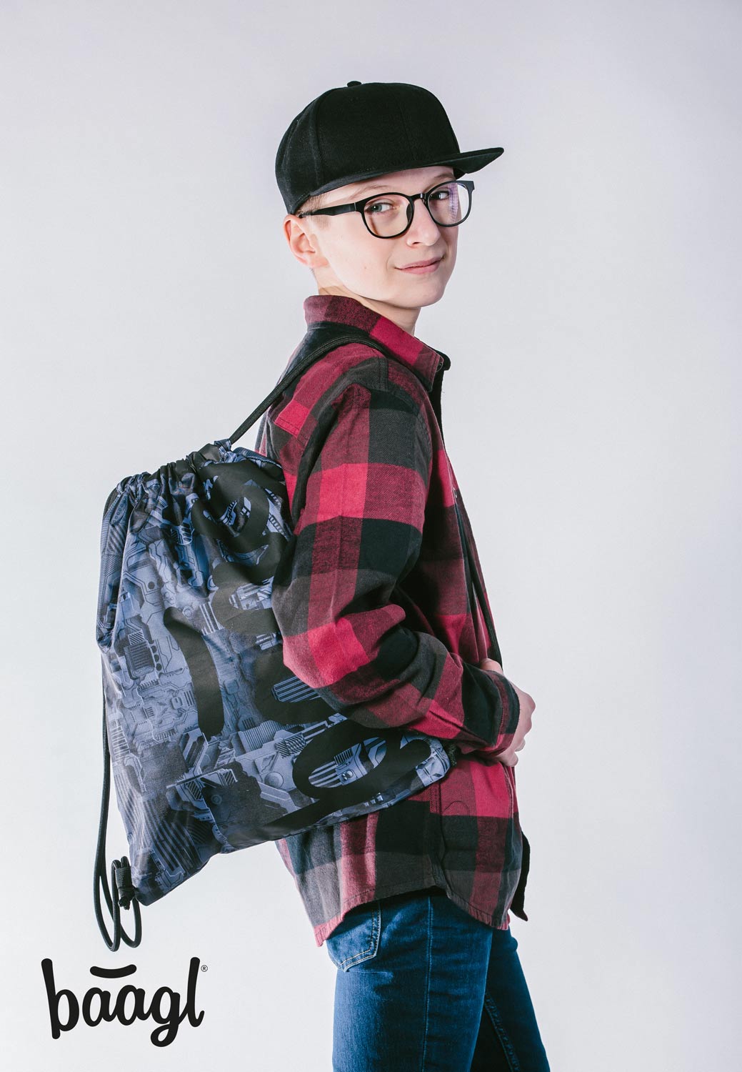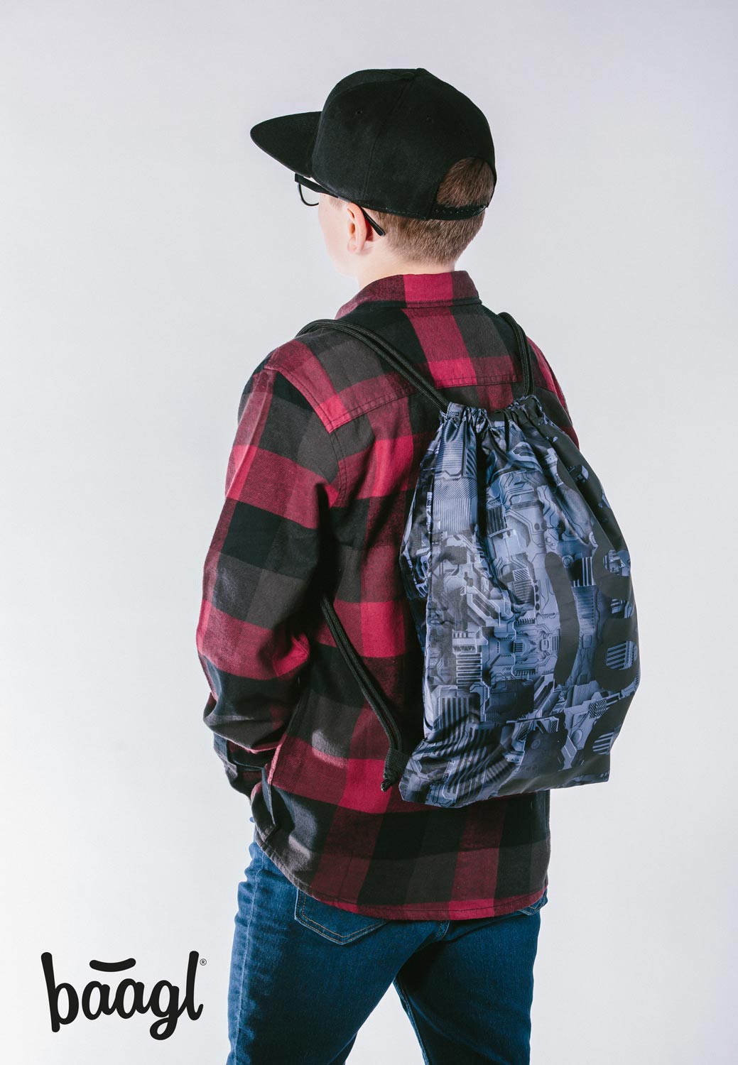 This gym bag with a theme of dark industrial elements will delight any schoolchild.