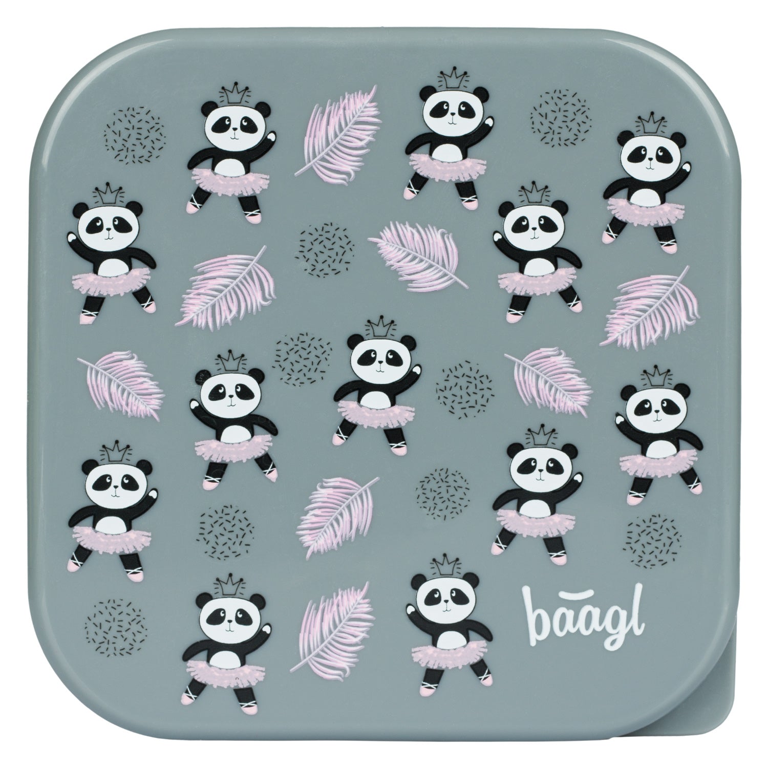 This pink and grey 4-in-1 snack box with cute pandas contains four separate boxes of different sizes that can be easily stacked. It allows you to combine different foods for a healthy and balanced snack.