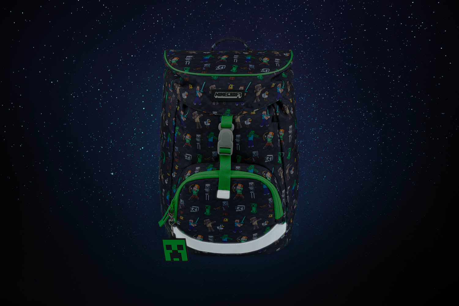 This backpack is based on the legendary computer game Minecraft, is suitable for children from the first year of primary school. It is lightweight and practical with a handy front pocket.