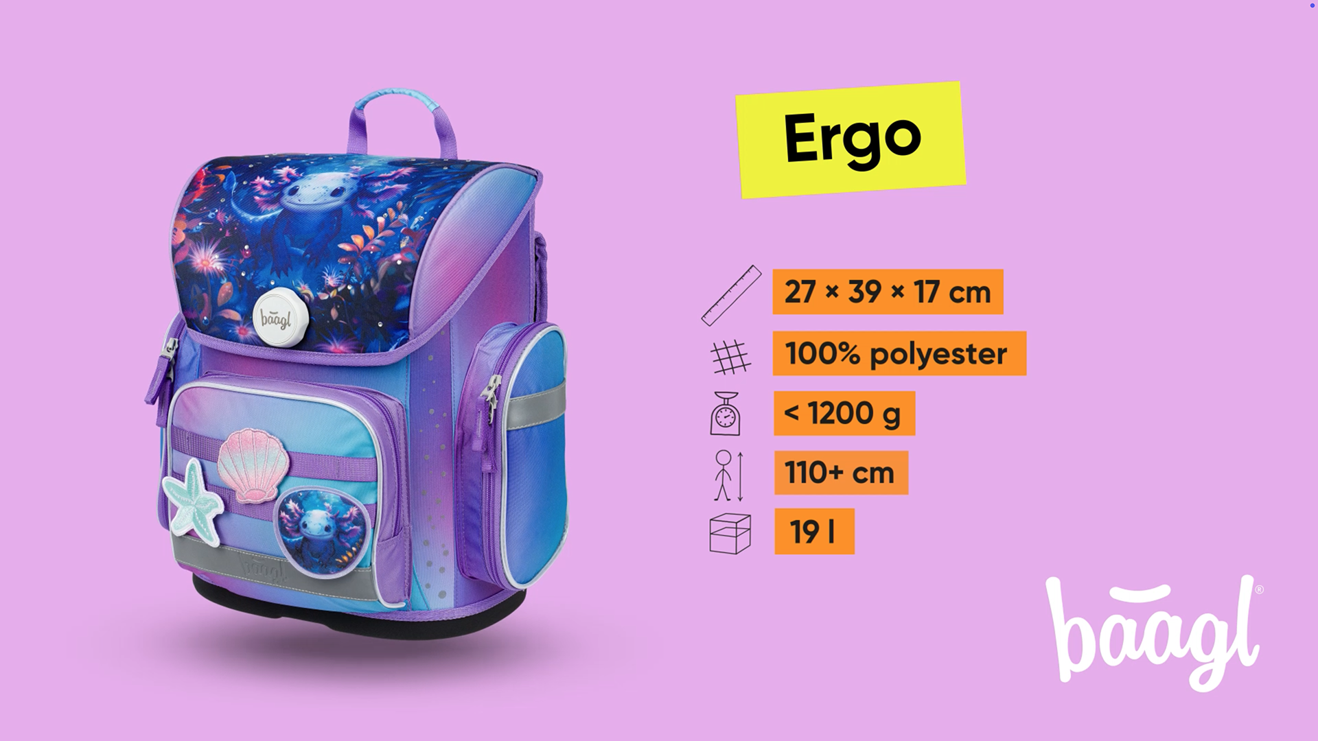 • School bag ERGO with reinforced body, suitable for primary school students upwards.