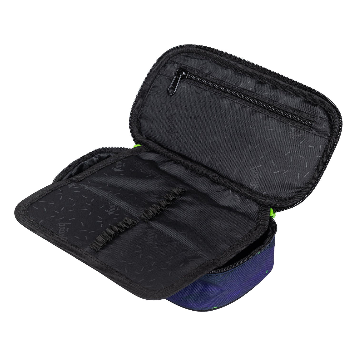 • Tough school pencil case with a hinged inner partition.