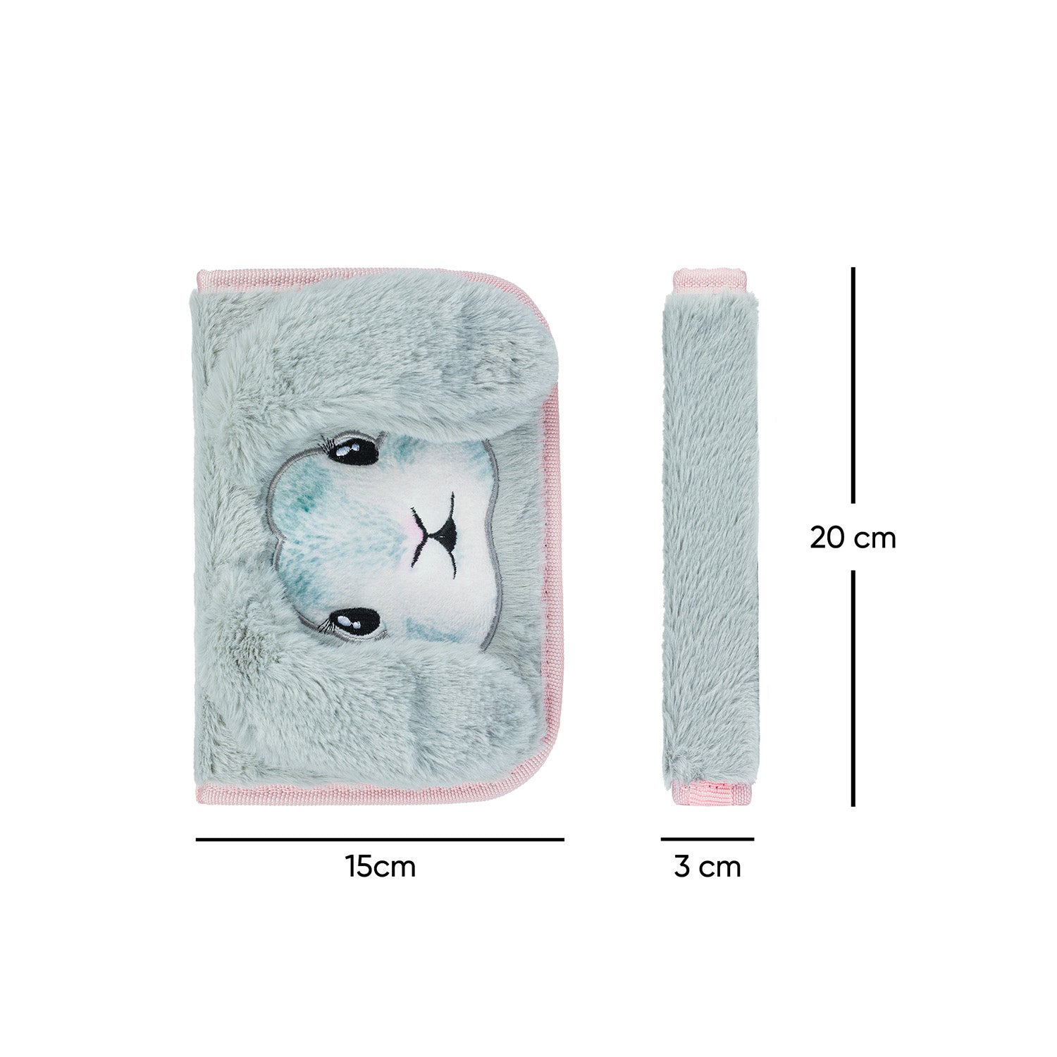 School double-flap pencil case with a pleasant plush surface and a picture of a cute rabbit.