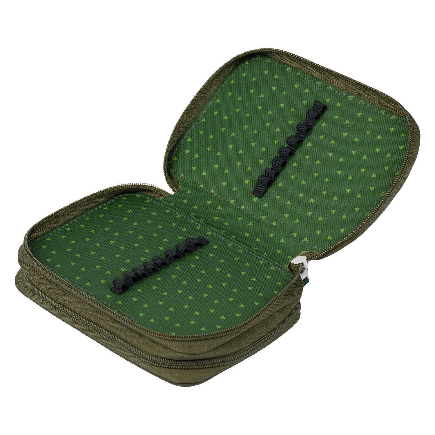 This two-storey school pencil case from the Shelly series featuring a dinosaur motif will provide children with enough space for all their writing supplies.