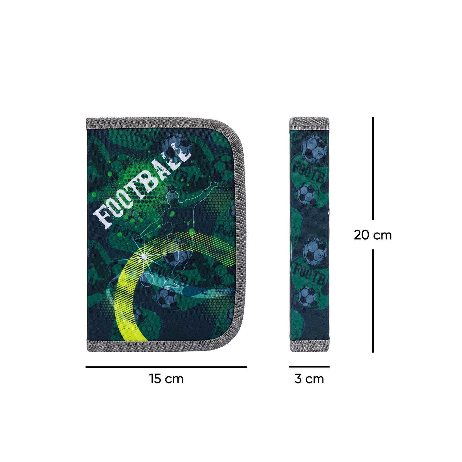 Classic pencil case Football with a single zipper and spacer for easier orientation. Recommended for children from the 1st grade of elementary school. When opened, the pencil case unfolds, offering ample space for school supplies.