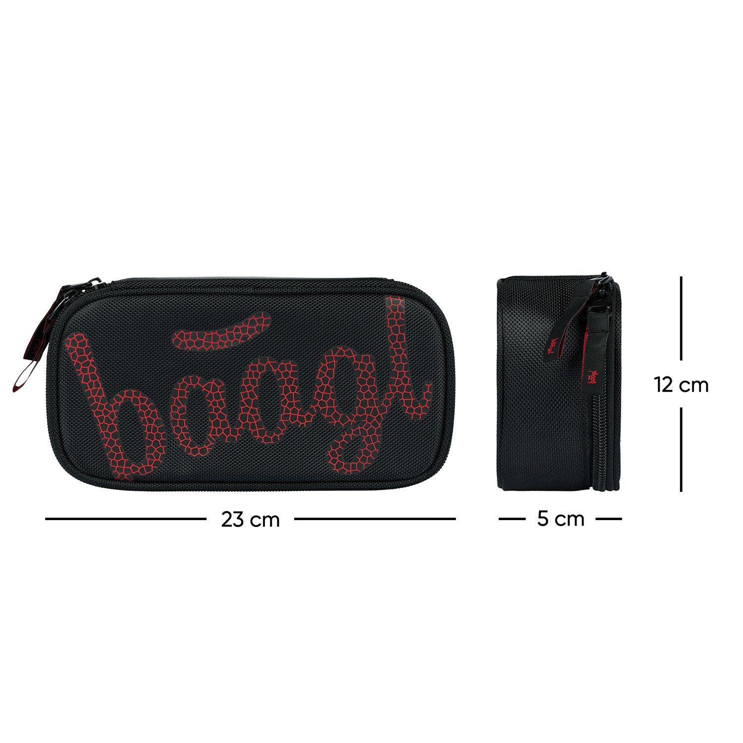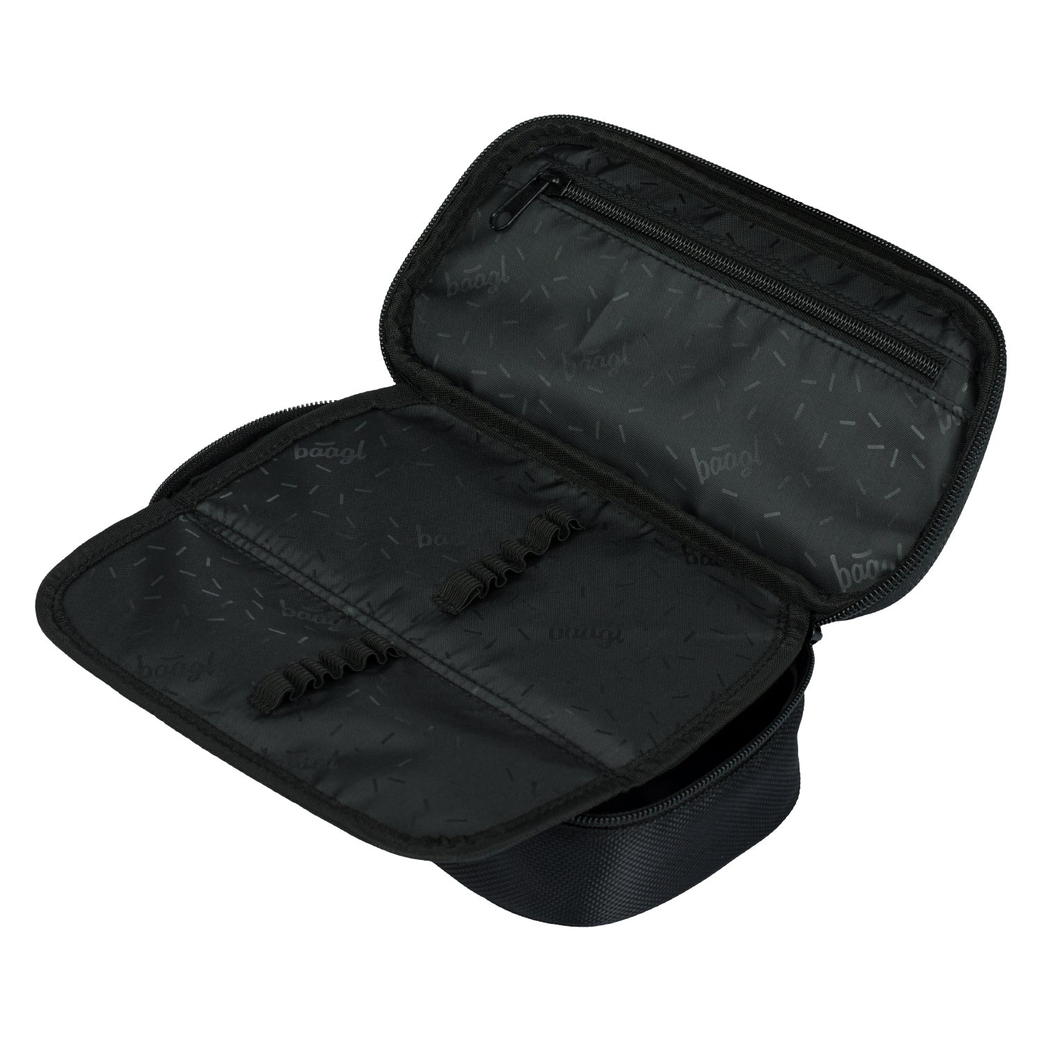 This black pencil case with red BAAGL logo has a double flip-up flap and a single zip closure. Recommended for children from the 3rd grade of elementary school onwards.