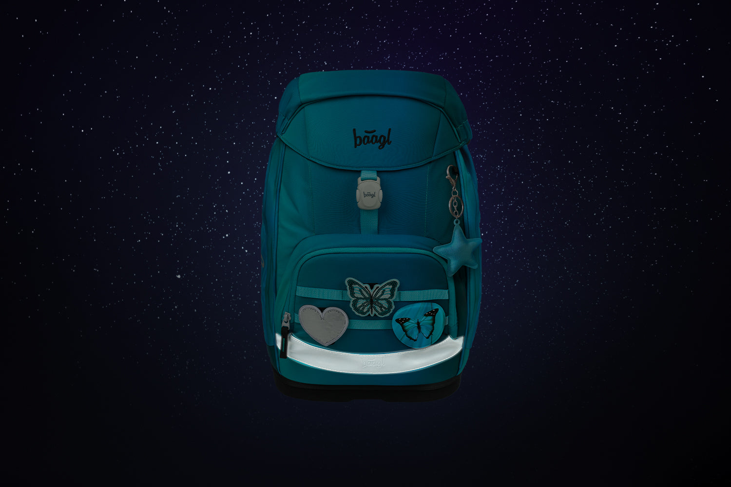 This complete blue Butterfly set features the ultra-lightweight Airy Plus backpack with interchangeable badges, a classic pencil case, attachable gym bag, art apron, and wallet - all at a great value price.