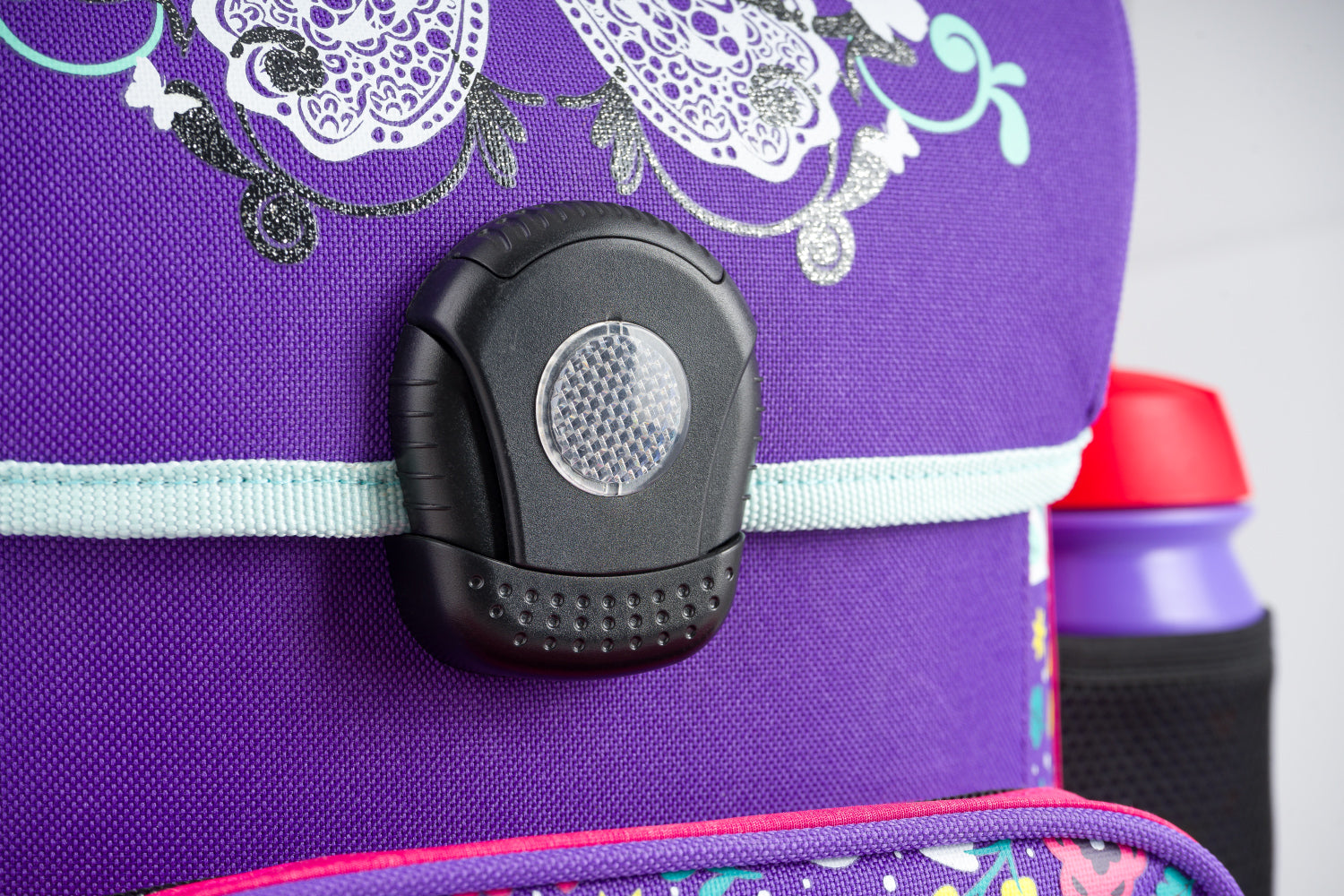 • Certified school bag with reinforced body, inner organiser and three separate pockets. Fastened with a quality buckle.