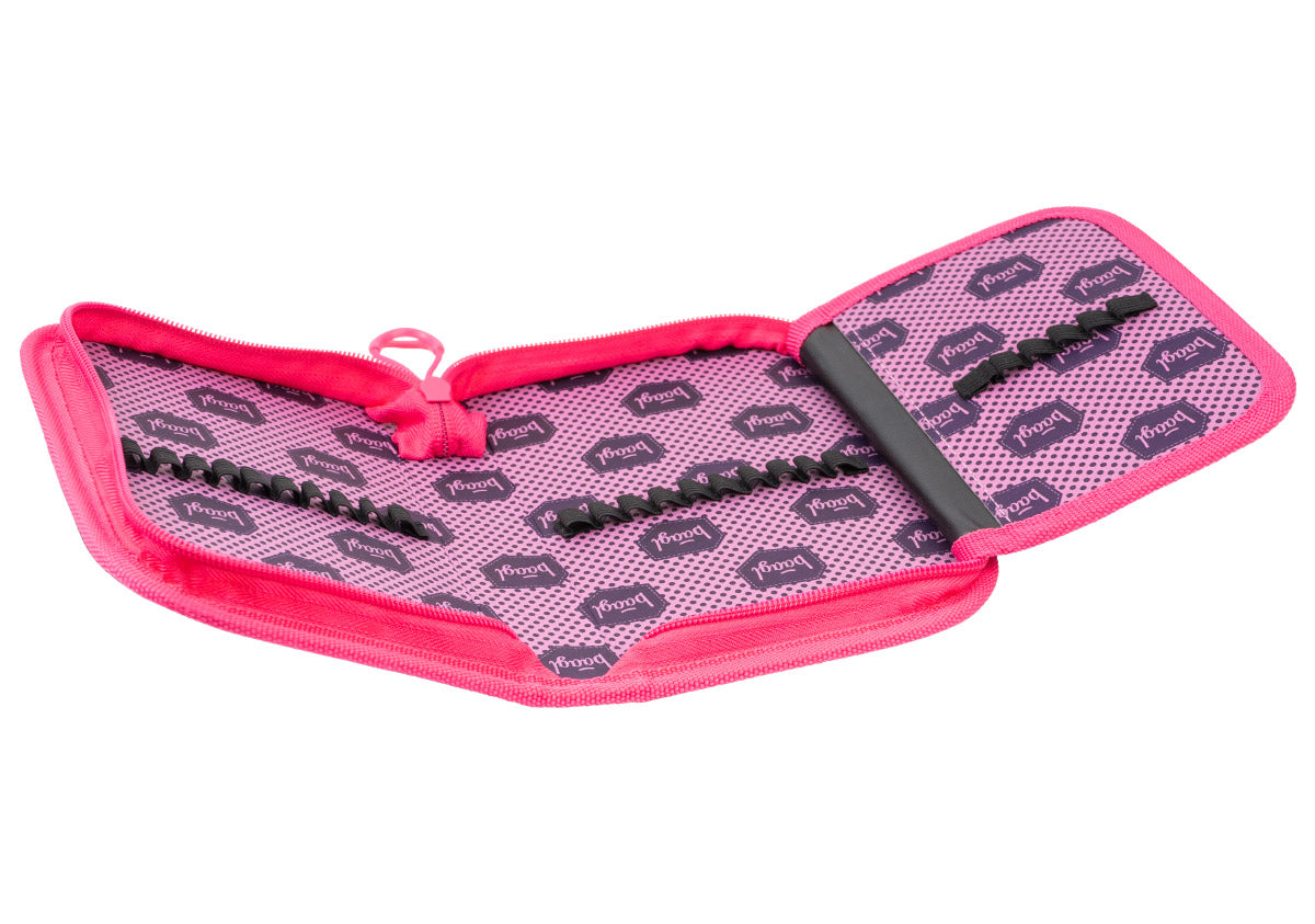 • On the inside of the bags flap is a practical elastic handle for a pencil case, ensuring quick access to writing materials.