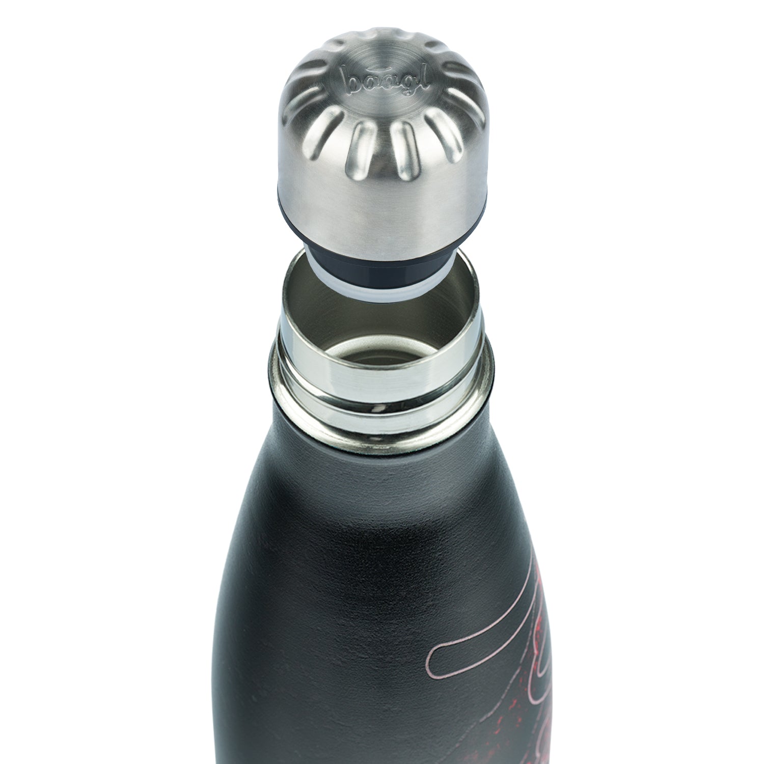 • Designer thermo bottle with metal lid and BAAGL logo.